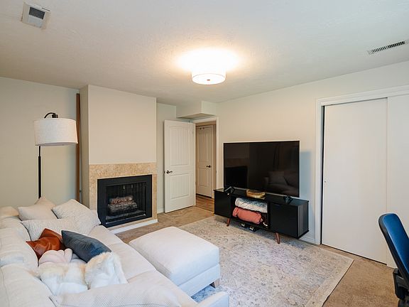 Enjoy a unique layout with flexible spaces, including a large basement room featuring a cozy fireplace that can serve as a family room or additional bedroom. Both bathrooms are stunningly redone with high-quality finishes, including real stone tile, a deep soaking tub upstairs, and a luxurious steam shower downstairs perfect for unwinding in style.