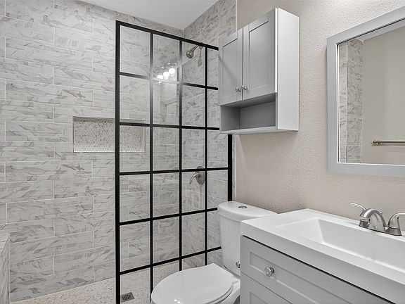 As you enter this modest entry home, an open living and dining area greets you and leads into the nicely appointed kitchen featuring granite countertops, custom backsplash, 5 burner gas cooking range and stainless steel appliances. The primary suite is located at the rear of the home and overlooks the privacy of your won backyard through two large ranch-style windows. The secondary bath also has granite countertops, and marble tiled shower, and a jetted spa tub. Outside, you'll enjoy the private, fenced-in backyard with a work shed and plenty of space for a backyard pool. Fully remodeled home(2022) includes new roof, new foundation, electric and plumbing work along with entirely remodeled bedrooms with modern flooring, and chic bathrooms.