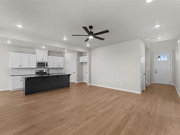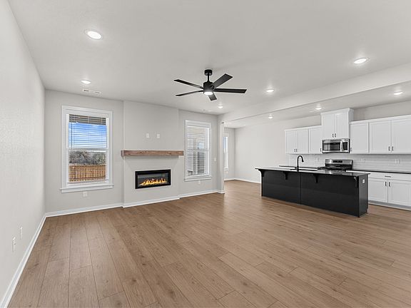 WEST facing! Fence, blinds and gutters included! Discover your dream home in the sought-after Osage Hills neighborhood. Clinton plan with garage on the left & West facing! 9 ft ceilings, linear electric fireplace in the living room, LVP flooring throughout the main living areas and primary bedroom, quartz countertops and more. Chef's kitchen boasting frigidaire stainless steel appliances, gas range, pantry, quartz countertops, bar pull handles, large island and gorgeous backsplash. Luxurious primary bedroom features abundant natural light, while the spa-like primary bathroom offers a walk-in shower, double sinks and spacious walk-in closets. Two secondary bedrooms on the main level, a 4th bedroom upstairs that would be a perfect bonus room & a separate laundry room. Nestled on a generous lot with covered patio that overlooks the serene sodded, fully fenced backyard. Sturdy concrete siding & brick! Model home located at 6008 SW Coywolf St- Lot 122.