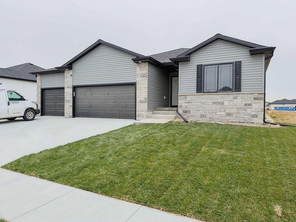 5 Bed/3 Bath/3 Car Garage - This new construction home is located in beautiful Fountain Hills in NW Kearney! The covered entry walks into a spacious foyer complete with large coat closet and the main floor features soft-close cabinetry, upgraded counters throughout, backsplash and slate stainless steel appliances in the kitchen. You'll love the LVT throughout the main floor w/carpet in the bedrooms. Basement is finished with 2 additional bedrooms, a full bathroom, large living space and ample storage. Includes sod w/under ground sprinklers. You'll be 10 minutes or less away from many of the top destinations Kearney has to offer, including farmers’ markets, parks, restaurants, groceries, nightlife and historic downtown. Room measurements are approximate.