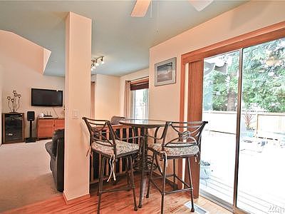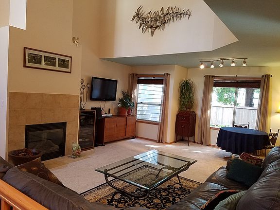 Spacious 1,512 square ft townhome in desirable Meadowdale. Downstairs has a kitchen with newer stainless steel appliances, pantry, eating bar, breakfast nook and refinished hardwood floors . All looking out at a private, fenced back yard, with a new 16x 12 composite deck, great for entertaining and barbequing. Open concept living and dining room with new paint, high vaulted ceilings and a cozy gas fireplace. Upstairs you have a spacious master bedroom with a walk-in closet and a 5 piece bathroom with soaking tub, 2nd bedroom, den/office and a full bathroom. New carpet and tile.