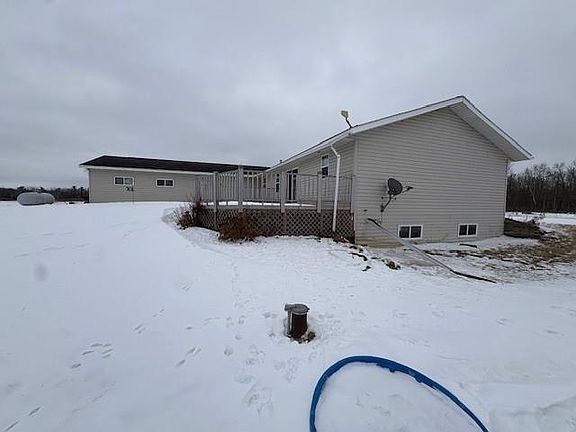 Country living at its finest! A three bedroom, two bath house is nestled on a little over two acres. The primary bedroom has an ensuite with a whirlpool tub, which is separate from the other two bedrooms. The house features an open concept kitchen into the large formal dining room with a gas fireplace, and a dining area is conveniently located off the kitchen. Additionally, there is a three stall attached garage with basement access. This full basement has 8ft+ ceilings and been upgraded with a new furnace, humidifier, water softener unit, and arsenic unit. Don't miss the opportunity to make this place yours!