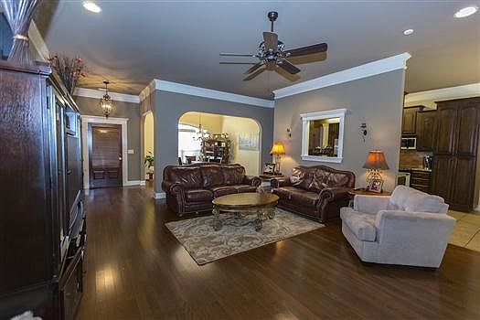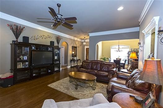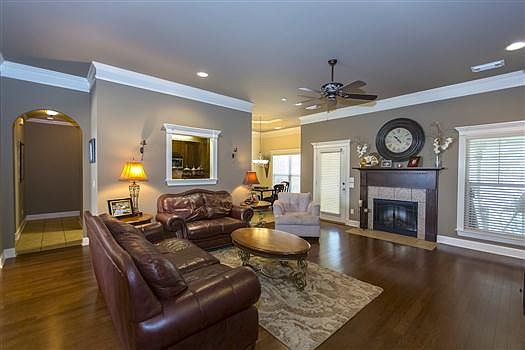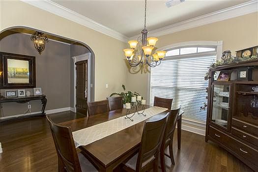 4808 Copper Loop Rd. - Stunning 4-bedroom home in The Summit! Curb appeal is ensured by the curved brickwork, board-and-batten shutters, full brick exterior and meticulous landscaping. Elegance continues indoors with deep crown molding, shining hardwood floors, curved archways, and elaborate molding at doors and windows. Those rich hardwoods shimmer in the living and dining rooms, ceramic tile in kitchen and baths. Kitchen also features granite counters, tile backsplash, stainless steel appliances and a charming breakfast nook with a step-up ceiling. Split bedroom floor plan offers a private master suite with trey ceiling, double sinks, whirlpool tub, tile shower and a walk-in closet. Covered back porch and open patio, fenced backyard that backs up to woods. Offers lots of privacy!