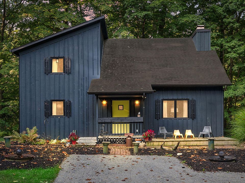 Wonderfully secluded home on over 13 acres and just a few miles to Lake Michigan and just over an hour drive to Chicago. Also, a fantastic opportunity to get into the short term rental market or add to your portfolio. Be on vacation all year with gorgeous forest, ravine, and wildlife views. As soon as you walk in, your stress level is sure to go down with a wonderfully calming ambience. Soaring ceilings and beautiful wood fireplace provide cozy yet spacious vibes throughout. The main floor has a nice open concept making for a wonderful spot to entertain. The efficient kitchen includes all appliances. The main floor primary bedroom and the bedroom upstairs are each generously sized and allow for privacy if there are guests. The walk out basement is nicely finished and provides potential for 2 more bedrooms and opens up to a charming picnic area in the back. The detached garage is over 1000 square feet and can easily accommodate several cars, yard toys, and tools. The big ticket items (roof and HVAC) have all been replaced in the past 10 years. If you're looking for you own little pocket of peace on earth, this might just be the one!