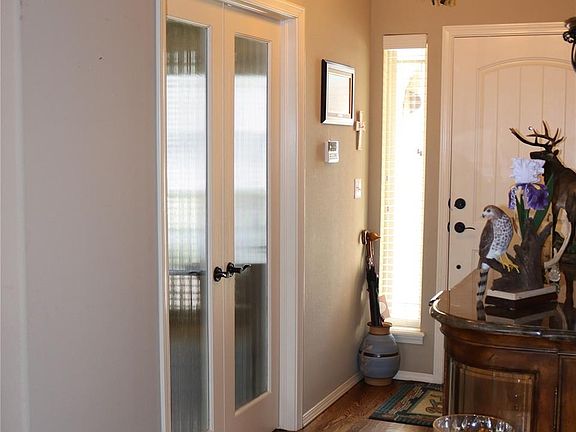 Many many upgrades. Beautiful home! Home warranty. Down spouts tired to the french drains. Security light around the home. Extended patio. Hardwood floors throughout. Stainless Steel appliances. Storm Shelter. Bonus Room / Office in the garage. Gardener tool container. Professionally landscaped, all on one level!