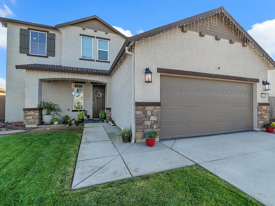 Beautifully designed 4-bedroom, 3-bath home built in 2022 located in a quiet newer subdivision of Keyes! This spacious 2,133 sq ft residence features an open-concept floor plan with a bright and airy great room that flows seamlessly into the modern kitchen and dining area. The gourmet kitchen offers granite countertops, stainless steel appliances, pantry storage, and an oversized islandperfect for meal prep and entertaining. Downstairs includes a bedroom and full bath, ideal for guests or multigenerational living. Upstairs features a large primary suite with a luxurious ensuite bath, dual vanities, and walk-in closet, plus two additional bedrooms and a versatile loft area. Enjoy energy-efficient amenities, dual-zone HVAC, and a spacious backyard ready for your personal touches. Attached two-car garage, indoor laundry, and easy access to Hwy 99 add convenience to comfort. Located near schools, parks, and shopping, this move-in-ready home combines modern design with a small-town feel. No HOA!SOLAR Leased.