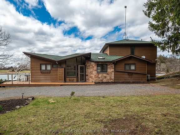 Stunning Waterfront Retreat on the UNESCO World Heritage Rideau Waterway! Welcome to your dream waterfront oasis! Nestled on the prestigious Rideau Waterway within Kingston city limits and provided with all the municipal services available to Kingston residents. This includes garbage and recycle pick up and a school bus route for the kids among others. This exceptional west-facing home offers panoramic views and breathtaking sunsets over your quiet bay of Cranberry lake. A rare find, this home also includes an ever coveted boathouse that would be next to impossible to have built today perfect for boating enthusiasts and lakeside living at its finest. The main residence blends charm and comfort, with inviting living spaces that embrace the natural beauty of the surroundings, with walls of glass to take in the views you have always been looking for but have yet to find. Enjoy seamless indoor-outdoor living with an expansive deck that wraps around the home with bonus a lakeside hot tub and a private waterfront ideal for swimming, kayaking, or simply soaking in the tranquil views. Additional features include a detached 2-car garage and a delightful guest bunkie ideal for visitors, extended family, or a private studio or office space. Meticulously maintained and well thought out with other features like a walk up basement, fire pit by the water, a buried electrical service line to avoid the risk of power outages in the event of a storm, you can move right in and begin to enjoy the home worry free immediately. Whether you're looking for a year-round residence or a weekend escape, this one-of-a-kind property offers the perfect blend of luxury, privacy, and timeless natural beauty on one of Canada's most iconic waterways.