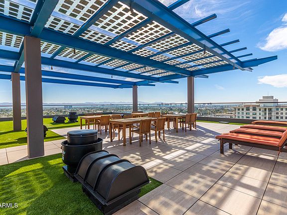 Very clean unit. Floor-to-ceiling windows greet you at this recently updated, upscale Optima Biltmore condo! NEW ROOFTOP POOL/SPA coming in March! Enjoy the light/bright, spacious great room with room to relax/dine. Updated kitchen w/ new quartz counters, counter seating, gas cooktop. Updated LED lighting. Open-air patio for al-fresco dining/relaxing. Incredible rooftop amenities w/ panoramic views, BBQ stations and room to socialize. Other amenities include community center w/ large patio overlooking courtyard, fitness center, concierge. Central location, walking distance to Biltmore Fashion Park, Lifetime Fitness, top restaurants and easy commute/airport access. Large foyer offers extra closet and room for a desk or seating. Secure parking w/storage locker. Move-in ready!