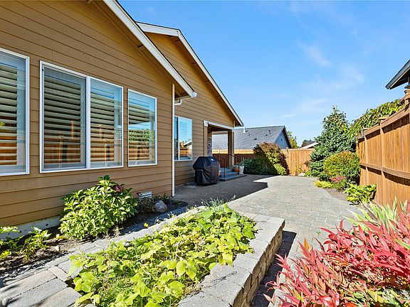 Coveted Jubilee Home w tons of upgrades! Light & bright home w high ceilings , upgraded trim, hardwood floors & Tile , Plantation wood shutters, formal Dining w sliding door to covered patio w a Stone surrounded Gas Fireplace perfect place to relax no matter what the weather is. Back yard is low maintenance w pavers & raised bed planter, Gas BBQ hook ups & weber grill. Spacious Bedrooms. Large Primary Bedroom w Ceiling fan & A beautiful En-suite w Lg Glass & Tile surround shower, w bench. Large Walk-in Closet, dual vanities w granite tops. Kitchen has a huge eating island , Quartz counters, Subway tile backsplash, Tons of cabinets w pull outs & soft close doors. Stainless appliances . Lg smart Space Utility room w sink , tons of cabinets