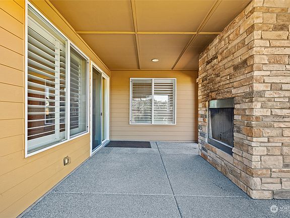 - Description: Hardwood Floors, High Ceiling, Wood plantation shutters, Slider to Covered Patio with stone gas fireplace
