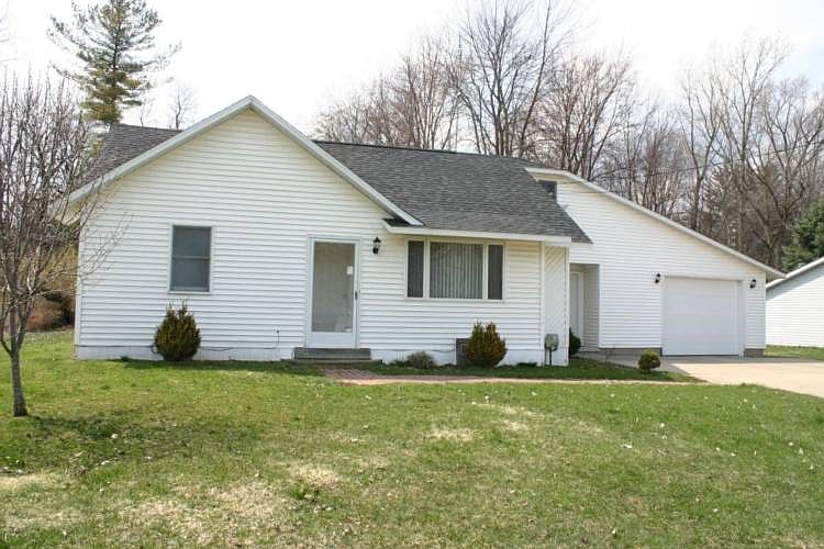 Country setting, close to the city. This 2 BR home, with an attached 4 car heated garage, is one to see! Home has been updated with oak cabinets, new tile floors, a new roof and dishwasher & refrig. in 2013. The maintenance free vinyl exterior is a great feature. Home is in great condition!
