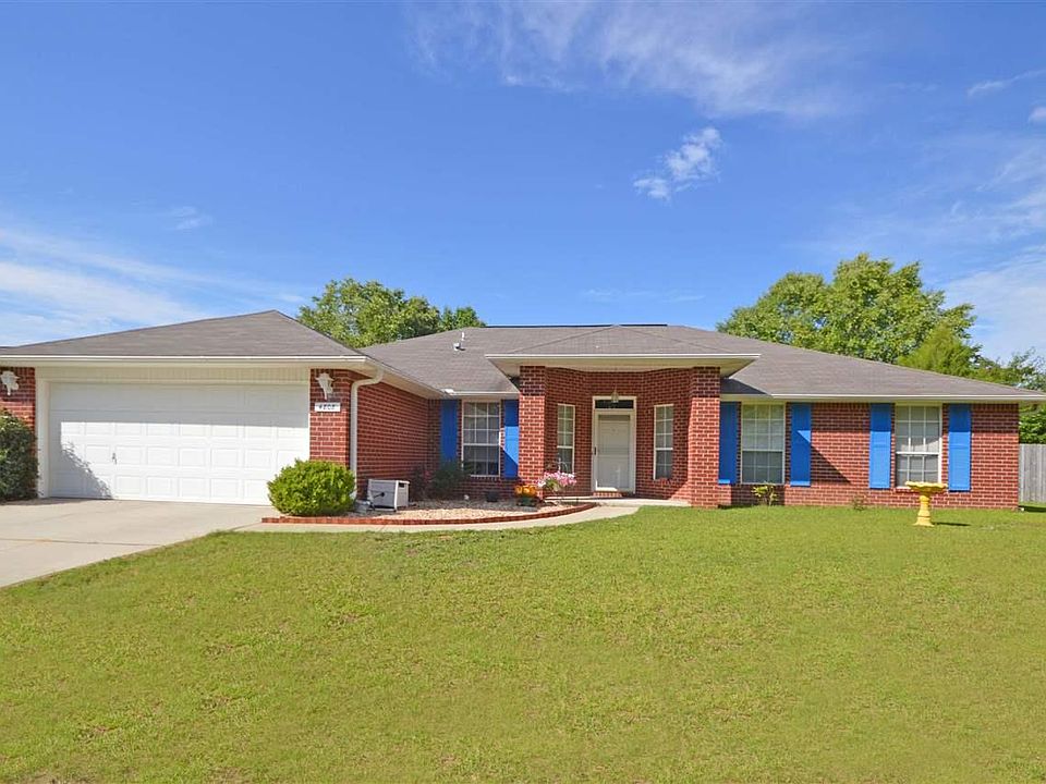 Popular 4 Bedroom/ 3 full bath floorplan on this all brick in Brentwood, conveniently located close to Hwy 90. Enter into a foyer with adjacent bonus room that can be used as a formal dining room or den/study. Laminate wood flooring throughout the home (NO CARPET!), except wet areas, which feature tile. The Great Room is open to the kitchen and has a corner fireplace that has never been used. The vaulted ceilings open up the space. French doors lead to a back patio and nice sized fenced in yard. The kitchen has plenty of light oak cabinets and stainless steel appliances. Chose to eat in the breakfast nook or at the entertaining/breakfast bar. This split plan features a spacious master bedroom and bath with large double vanity, his/hers closets, a separate shower and garden tub. There is a second master/teen/in-law suite with attached bath and 2 additional bedrooms share a third bath. There is a fenced yard with a double gate, fabric shield for hurricane protection, , extra cabinets in laundry room, pull down stairs in garage, and is wired for security and surround sound. Call today for an appointment to see this great house!