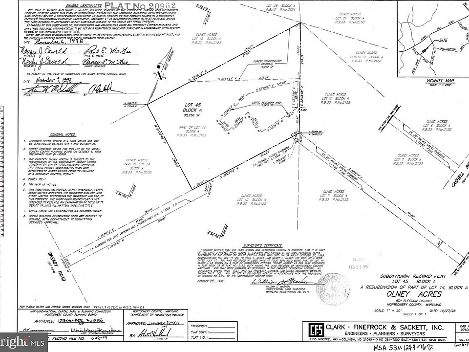 This 2 acre lot is recessed back from the street and is to the left of the home coming soon for sale at at 4807 Bready Road. The adjacent 4807 Bready Road home is sited on its own 2 acre lot. The lot and home are being sold AS-IS. For questions about building on this lot, please consult Montgomery County Park and Planning or best to obtain advice from your own zoning attorney.
