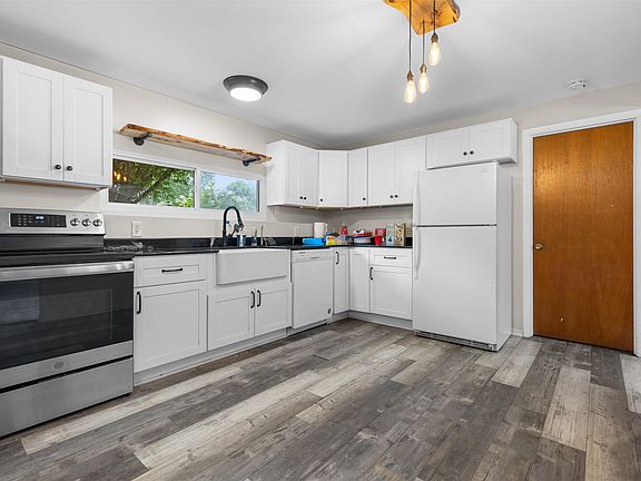 Charming bi-level home with 4 bedrooms and 1.5 bathrooms. The upper level features a bright, spacious living room, updated kitchen with farmhouse sink (renovated in 2020), and 3 bedrooms with a full bathroom. The lower level includes a cozy family room, 4th bedroom, and a half bath. Enjoy outdoor living on the back deck overlooking a yard with mature trees and a garden shed. Newer windows, siding, and roof, plus a water heater from 2021. One-car attached garage. Great curb appeal and located near Aldeen Park. A comfortable, well-kept home ready to enjoy!
