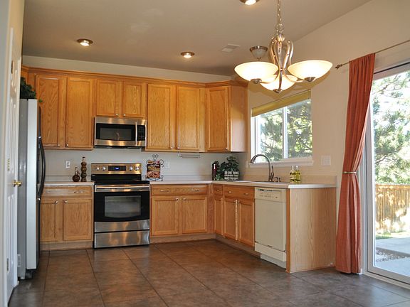 IMMACULATE 2-story home w/ 3 bedrooms+3 bathrooms*MOVE-IN READY*OPEN FLOOR PLAN W/ modern Kitchen*STAINLESS appliances*STORAGE in EXPANSIVE main floor closet & ENLARGED GARAGE instead of basement*MASTER SUITE W/ walk-in closet and oversized SOAKING TUB*Large secondary bedrooms w/ walk-in*Vaulted ceilings*Crown molding*Brand New Exterior Paint*NICE-SIZED Back yard w/ PATIO*SURROUND SOUND ready*Security System*One block to Elementary school*Close to grocery & retail*Open space trails nearby*GREAT HOME AND NEIGHBORHOOD! Come quick!
