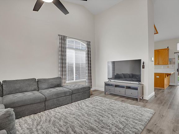 This well-appointed home offers modern updates, comfort, and great functionality. Vaulted ceilings and newer vinyl laminate flooring create an open, inviting feel on the main level. From the kitchen, enjoy views of the dining and family rooms as well as the large backyard, making daily living and entertaining easy. The downstairs half bath is tastefully updated, and all four bedrooms are upstairs, including a primary suite with newly installed vinyl laminate flooring. The oversized garage provides excellent space for storage, projects, or a workspace. The expansive backyard features a spacious covered patio with ceiling fans-ideal for year-round dining or unwinding-plus a large storage shed and an additional smaller shed for extra storage. Conveniently located near freeway access, shopping, and restaurants, this home blends modern touches with everyday convenience and versatile indoor-outdoor living.