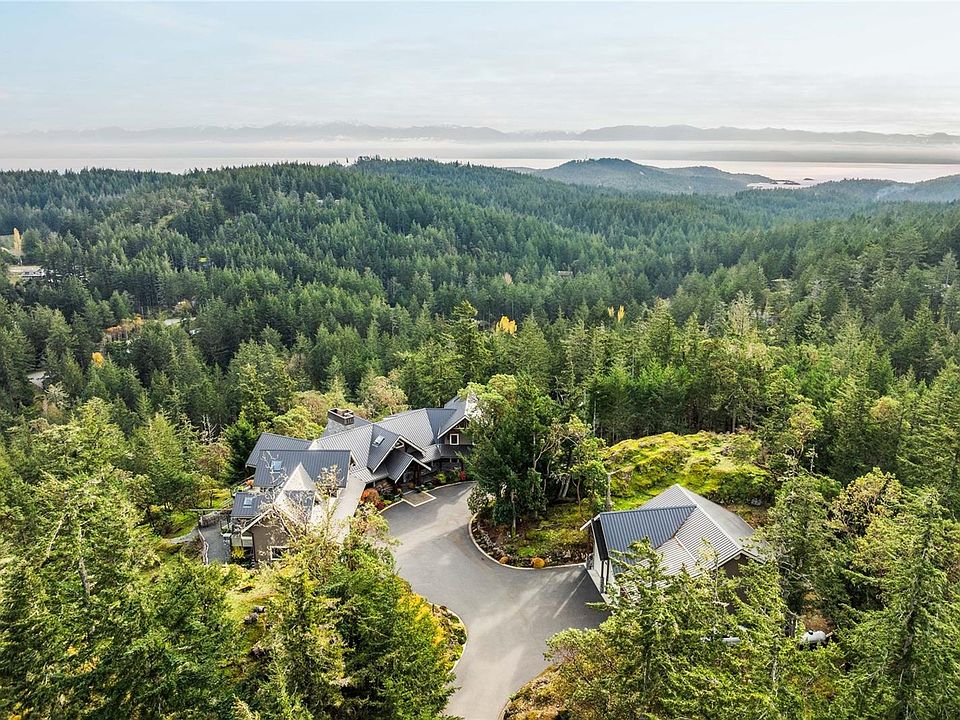 The finest country estate to grace the market in recent years. "ARDNAMARA" is a custom, oak timber frame home by Mike & Ryan Armstrong w/Riverbend Timber Framing & renowned Abstract Dev. Situated on 23.1ac (2 legal lots) of pristine forest, this stunning 7,606sf masterpiece boasts an interior by Jenny Martin Design, incorporating an abundance of natural materials & offering stunning views from downtown Victoria, over Juan de Fuca Strait to the Olympic Mtns. The interior embodies a grand living rm w/23ft ceiling, huge dining rm, gourmet kitchen, massive primary bedroom w/view balcony, walk-in closets & opulent 5pc ensuite, 2 more bedrooms both w/ensuites, office, media rm, bar/lounge, gym & wine rm w/tasting area. The gracious interior seamlessly opens to the outdoors & 3453sf of decking/patios. Dbl garage, detached 1,984sf 3 bay garage+shop. Equestrian ready w/1,734sf 4 stall barn w/hayloft, tack rm, paddocks & trails to surrounding parks & your own all weather riding ring. A rare find
