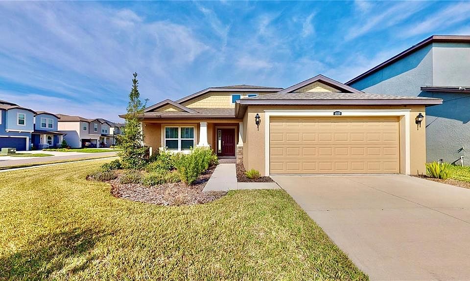 Move in ready 4bed/2ba, with home office and 2 car garage. Built in 2023 this home is located approximately 20 mins from downtown Tampa, Tampa International Airport, Citrus mall, and just a few minutes to grocery stores. Easy access to the Veterans expressway, I-275, and Dale Mabry. Carrollwood Landings is located in a very quiet neighborhood off Casey Road. This home boasts tiles in the living areas and vinyl wood floors in the bedrooms. The features include, stainless steel appliances, granite counters, a backsplash in the kitchen, walk-in master closet, a master suite bathroom with a garden tub, a separate euro style shower, and laundry in the garage (to eliminate allergies caused by lint dust). The Inside laundry area has been left for storage or can be used as a small office or closet or converted back to a laundry room. The home comes with new blinds, water softener fully fenced back yard, with an automatic irrigation system. NO CDD ! HOA ($163 mo.) includes cable, internet, security gate and common areas.