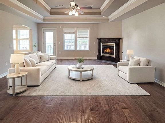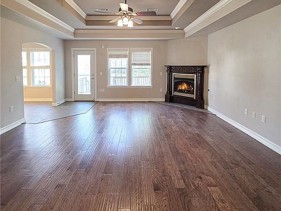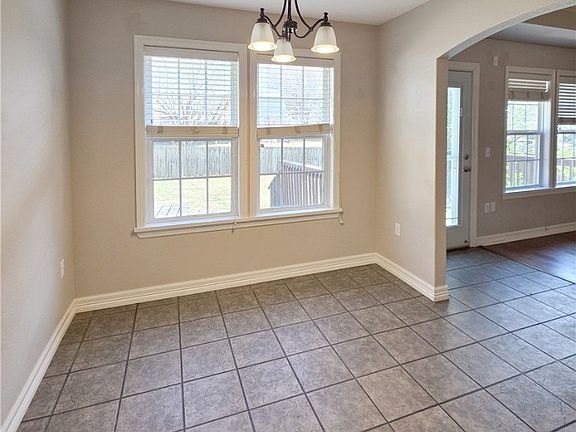 3BR home with dedicated office on a quiet cul-de-sac. Open living area with tray ceilings, fireplace, and great natural light. Granite kitchen with breakfast bar. Brand-new carpet in two bedrooms. Spacious primary suite with double vanities, soaking tub, separate shower, and walk-in closet. Fenced backyard with side-access gate. Quick access to 71B, I-49, and Old Missouri Road.
