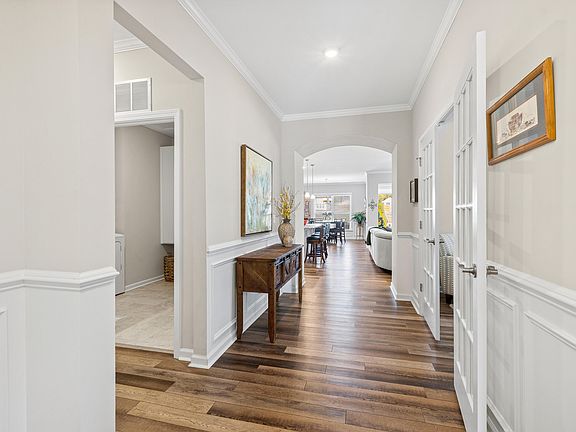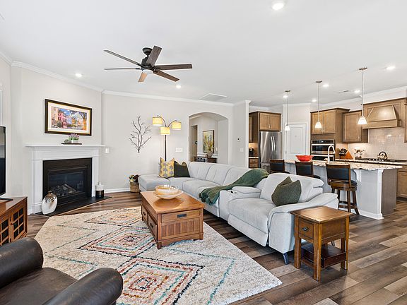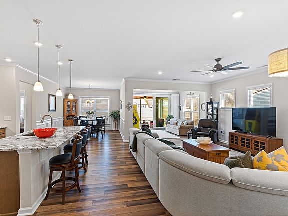 This fabulous floor plan includes three bedrooms and an office, making it ideal for both families and those enjoying retirement. The stunning single-story design showcases a gourmet kitchen with a central island and upgraded amenities, all overlooking a spacious gathering area. The additional sunroom features cascading glass doors that lead to a screened porch, expanding the living space. Situated on a larger lot at the end of a cul-de-sac, this home offers enhanced privacy. The backyard provides opportunities for gardening, and a short stroll will take you to the community garden, as well as a large, fully equipped dog park. With Interstate 540 just a mile away, you'll enjoy convenient access to various locations within the Triangle from this exceptional spot. Just minutes from the popular Fuquay-Varina, you'll find an array of dining, breweries, shopping, and parks right at your fingertips, along with easy access to Wake Tech Community College. Built in 2021, this home retains a fresh, new feel without the lengthy wait involved in building. Make sure you don't miss this opportunity!
