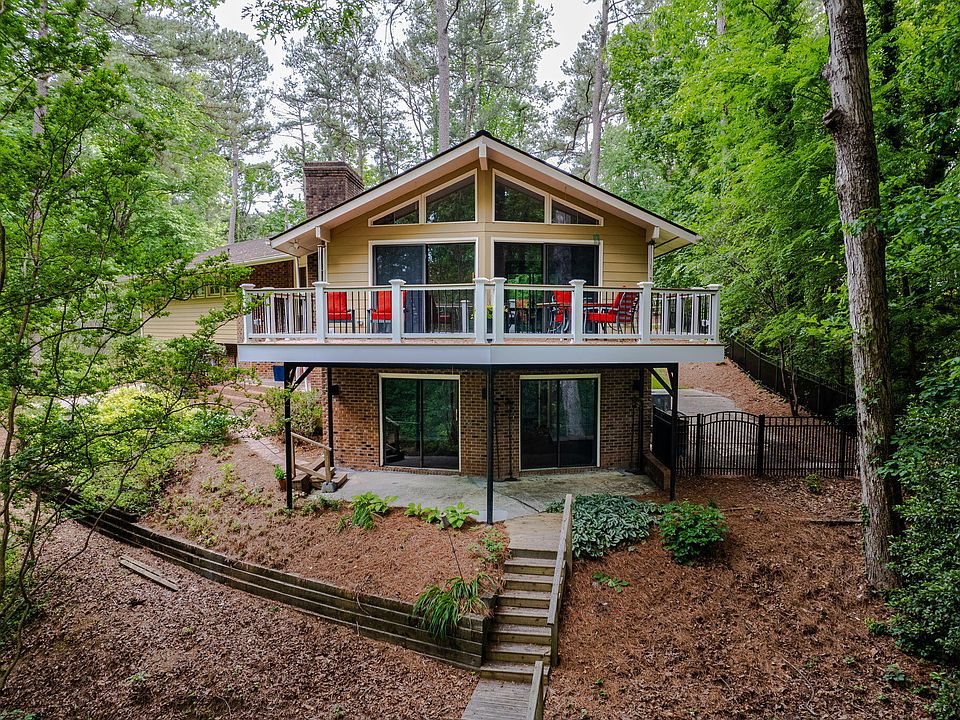 Back on the market at no fault of the sellers. Welcome to Oasis Retreat in Raleigh's Will O Dean neighborhood, a lakeside sanctuary surrounded by mature landscaping for ultimate privacy. The upper floor of this stunning property boasts 3 bedrooms, and two fully renovated bathrooms, beautiful mid-century kitchen. Central vacuum system, a cozy gas fireplace in the living room that opens up to a large new deck with picturesque lake views, perfect for gatherings or unwinding in the fresh air. Additionally, a screen porch adds to the charm of this serene retreat. The downstairs area can serve as a mother-in-law suite or office and features a full bathroom, kitchenette, and a separate entrance. Lake view, a game room with a wood burning fireplace, a gardening room, new vinyl flooring, and freshly painted walls. Upgrades include a water softener, HVAC system, roof, floors, fence, Radon Mitigation system, Deck. This property offers ample parking space for vehicles, boats, or RVs, along with a fenced front yard for pets to roam freely. With No city taxes or HOA fees, you can enjoy the convenience of city living without the added costs. Additional Parcel PIN# 1736080552, No tax bill tax value $100.00 Property Description SM PT WILL-O-DEAN ACRES SUB BM2021-00093