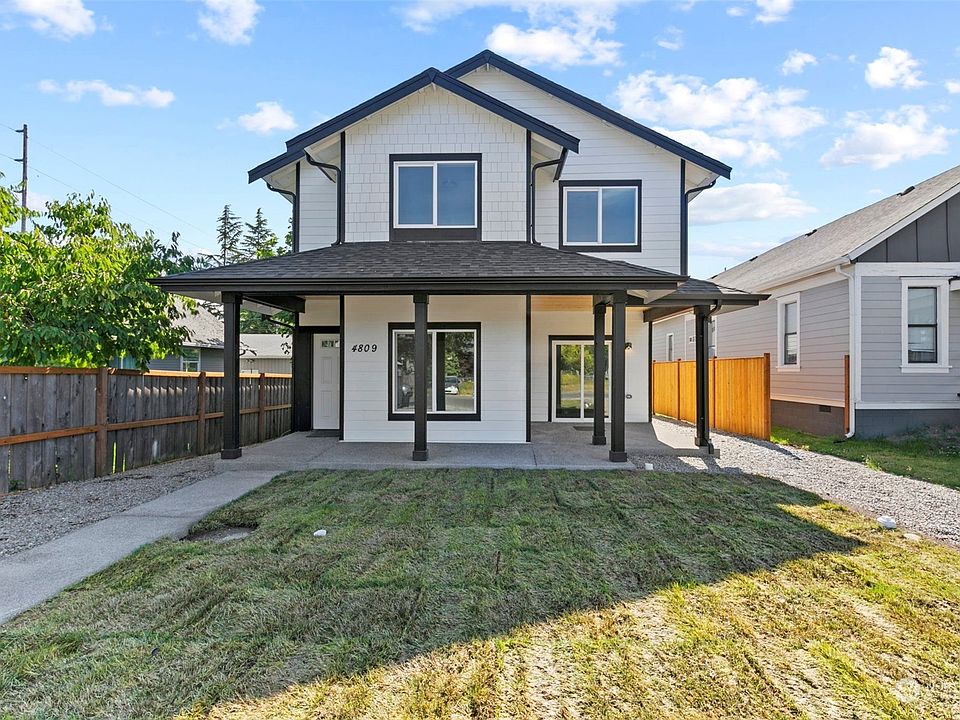 Fabulous open floor plan w/detached additional dwelling unit (Apartment above the garage). "DADU" creates an opportunity to supplement your mortgage by renting the "DADU", currently renting for $1,500 on month to month. Perfect for "house hack" or long/short term tenants, main house had rented for $2,800. Walking distance to Tacoma Mall, close to Transit Terminal and multiple access points to I-5. Your new home is professionally designed with high-end finishes, luxury vinyl flooring on main floor and carpet upstairs in main house, quartz counter tops, tile backsplash, Stainless-Steel appliances and A/C comes with this move-in ready home. Detached ADU above 2 car garage in back featuring a heat pump and well-appointed finishes.