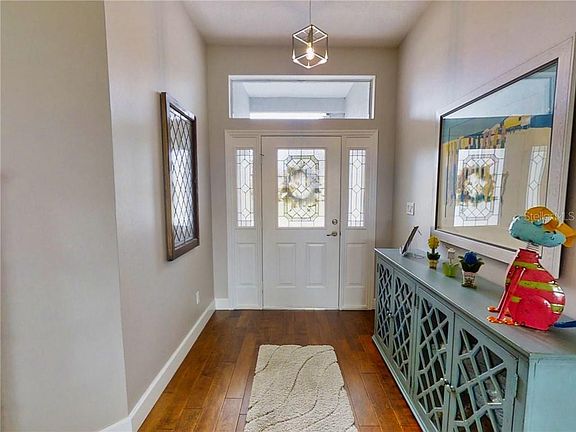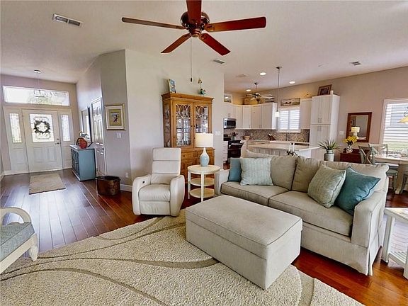 Amazing view of the fairway on this 18 hole championship golf course. Better yet is the stunning interior of the fully upgraded and updated home. 19ft. x 8 ft. sliding patio doors from the living room open up to the 27 ft 10 ft screened lanai for your relaxing and entertaining delight HGTV designers would be impressed with the remodeled interior of this home. New everything in the kitchen. White cabinetry, tile backsplash,farmhouse sink, double oven stove and a new center island with great storage. Master bedroom bath has been remodeled with a king sized walk in shower with gleaming white tile. Stay organized with this master bedroom closet design system with built ins. Double doors invite you into the den with built in office cabinetry. Your guests will feel like they are at a spa with the redesign guest bath. Perfect placement of the waterfall tile makes this a one of a kind. This home has a garage to be envious of. Two car garage plus the golf cart garage is large enough to store your hobby car and olf cart. Storage cabinets helps you stay organized. This home will provide you with many years of luxury living without having to do updates. The roof has been recently replaced. Appliances are new.