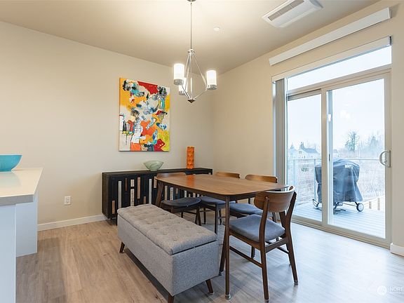 Welcome to Larrabee Springs! This 3-bed, 1.75-bath home is located in the desired NEWER Energy Efficient Contemporary Community in Bellingham! Upstairs opens to spacious living area with dining area and private balcony. Enjoy breathtaking views and sunsets from private balcony that overlooks wetlands. Modern kitchen w/newer appliances, island and storage. Large windows have an abundance of natural light. Primary suite with en suite bath and walk-in closet. Main level has 2 bed, 1 bath, one bed has access to large fully fenced backyard. Solar panels and mini split with heat & A/C to keep energy costs low. One car attached garage and driveway parking. Very walkable neighborhood. Located close to Cordata Park, amenities and shopping!!