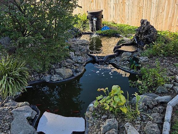 Finished basementSpring fed koi pondLarge patioLarge eat-in kitchenLarge covered front porchCorner lotFully fenced backyard