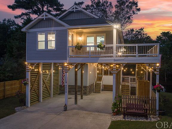 Discover a serene and enchanting haven nestled amidst a tranquil neighborhood in the heart of Kitty Hawk. Experience the tranquility of this charming waterfront home, with golf course & water views, in the serene woods Sea Scape. Situated on a generous 13,227 square foot lot in a peaceful cul-de-sac, this property is perfect for families with children. Right at your doorstep, you'll find opportunities for fishing, kayaking, and canoeing right in your backyard. For nature enthusiasts, the nearby 1890-acre Kitty Hawk Reserve offers fantastic hiking and biking trails. Golf enthusiasts will appreciate the proximity to Sea Scape Golf Links, while the beach is just a short walk away. Situated just a 4-minute drive from the beach, this idyllic property offers the best of both worlds - a peaceful setting and convenient access to the ocean. As you ascend the stairs, you'll be captivated by the stunning views of turtles and birds from the large top level sun deck, where you can bask in the sun or relax beneath the shade of the screened-in porch. The main living area boasts LVT flooring (Pelican Gray Waterproof Flooring) and a soaring vaulted ceiling, creating a welcoming and contemporary atmosphere. With 4 bedrooms and 3 bathrooms, this waterfront home in the Sea Scape Golf Links Neighborhood provides ample space for families and guests. As you settle in for the night, there are days when you can even hear the soothing sounds of waves crashing in the distance. Adding to its versatility is the accessory dwelling unit (ADU) on the ground floor, complete with a kitchenette and views to die for. This separate apartment/in-law suite can be utilized as a rental, guest quarters, studio apartment, or seamlessly incorporate into the living space, offering incredible flexibility. Investors will be enticed by the potential of this turnkey home, which boasts approximately 800 square feet of space that could be developed underneath the existing structure. The possibilities are endless! This property provides a haven for year-round family living. There's also ample room for R/V or boat storage. Recent updates have further enhanced the appeal of this home, including new siding, decking, painting, kitchen cabinets, lighting, and tile. A new 4 bedroom drainfield was installed in 2023. The HVAC system was replaced in 2017, ensuring comfort year-round, while the waterproof floors offer peace of mind. Don't miss the opportunity to own this exceptional property that combines a serene location, modern updates, and countless recreational possibilities .Appraisal on file (please request, too large to upload in MLS) for $533,000 which was done BEFORE the seller put over $30,000 worth of documented upgrades since appraisal report, not including all labor costs.