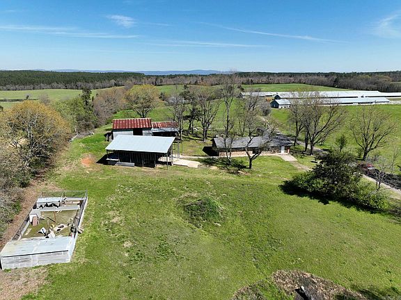 ONE OF A KIND FARM WITH LOTS OF POTENTIAL! Old chicken farm with 2 homes. Main home is a spacious 3 Bedroom, 2 bath home with 1838 square feet. Originally built in 1978 but has been completely redone since 2020. For efficiency and style, the home is all electric, with kitchen appliances, central heat and air with a wood burning stove for cozy evenings. An additional home on the property awaits your finishing touches. With 1176 square feet, it is framed for 4 bedrooms and 2 baths. Customize this space to suit your needs, whether it be for guests, extended family, or rental income. There are 3 former chicken houses, now cleared of equipment, repurposed as hay or implement storage, 1 most recently repurposed and utilized as a Cannabis Cultivation Facility with equipment and 1000 amp electrical service, not currently in operation. There are 79.48 acres of beautiful, rolling hills of pastureland and scattered trees. There are 2 barns, a detached carport building, 2 ponds and land is fenced and cross-fenced for livestock. So much there, and so many opportunities for whatever you can think of.