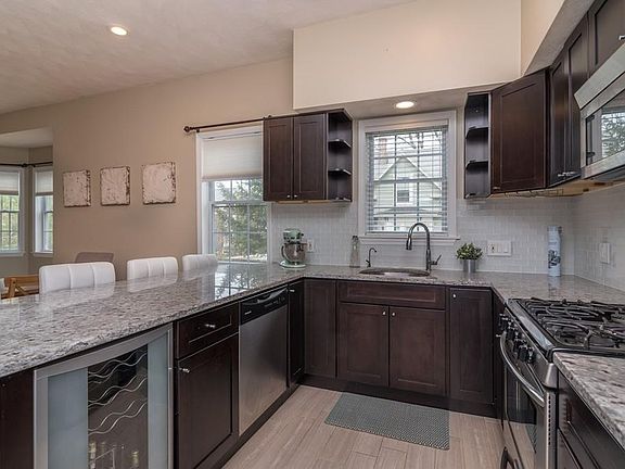 - KIT_DSCRP: Countertops - Stone/Granite/Solid, Flooring - Stone/Ceramic Tile, Stainless Steel Appliances, Kitchen Island, Open Floor Plan, Wine Chiller, Gas Stove, Peninsula