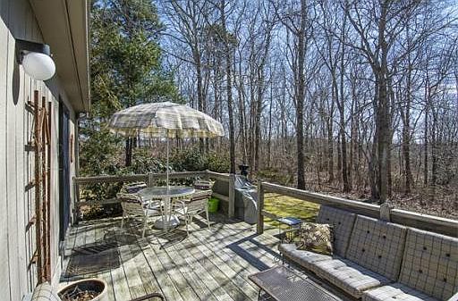 What a setting for this beautiful ranch style condominium in desirable Buck Island Village. Located at the back of the complex, this end unit overlooks a wooded yard and has a feeling of great privacy. Entering into the inviting foyer you find a large living room with cathedral ceilings and a fireplace. The kitchen comes with maple cabinets. The master bedroom has a private master bath, generous closets, and a slider to the deck. The guest bedroom has charming built-ins and an access to the second bathroom. Gas heat, central air conditioning, first floor laundry, association pool, tennis, and a clubhouse. A true pleasure to show.