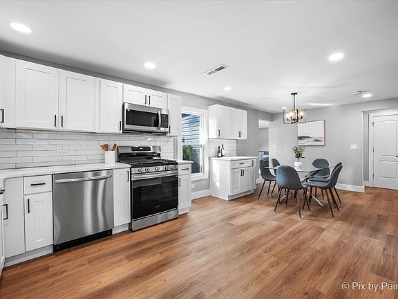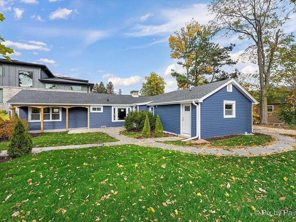 Step into comfort and style with this beautifully renovated 3-bedroom, 2-bath ranch in a prime location. Enjoy the ease of one-level living, modern finishes, and a private setting that make this home truly special. The open floor plan showcases a stunning new kitchen with quartz countertops, custom cabinetry, stainless steel appliances, and new flooring that flows seamlessly throughout the home. The adjacent dining area opens to a spacious living room anchored by a cozy fireplace that's perfect for relaxing or entertaining. Retreat to the primary suite featuring a full ensuite bath with a walk-in shower and custom tilework. Two additional bedrooms and a fully remodeled hall bath complete the main living area. A convenient mudroom off the kitchen and a large laundry room with extra storage add everyday functionality. Outside, you'll find a detached two-car garage and a private yard. New roof and siding, new cabinetry/vanities, appliances, flooring, lighting, paint throughout. Located in top-rated District 62 and Maine West, you're only minutes from Lake Opeka, the Metra, O'Hare Airport, and local favorites like Paradise Pup, Via Roma, Foxtail on the Lake, and Boston Fish Market. This home offers the modern updates and location you've been searching for!