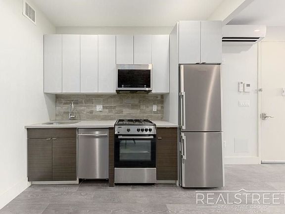 NO FEE! NEW 1 BED in Cobble Hill with Amenities! Stunning Brand New Large 1 Bedroom in Cobble Hill with all the amenities you could desire! With it's bright and open layout, tall ceilings, and amenities like Laundry room, shared garden that is getting beautifully landscaped, Air Conditioning, Dishwasher, and video intercom you cannot go wrong. The layout is ideal with the bedroom in the back facing the peaceful backyard and can fit a queen size bed. The front living room can also function as a second bedroom if needed. The large open modern kitchen with its gray & white cabinets features state of the art stainless steel appliances and stone counters. A sleek bathroom featuring gray tile work and a spa like shower with enclosed glass doors is near the bedroom. There is also storage available for rent in the basement and guarantors are allowed.