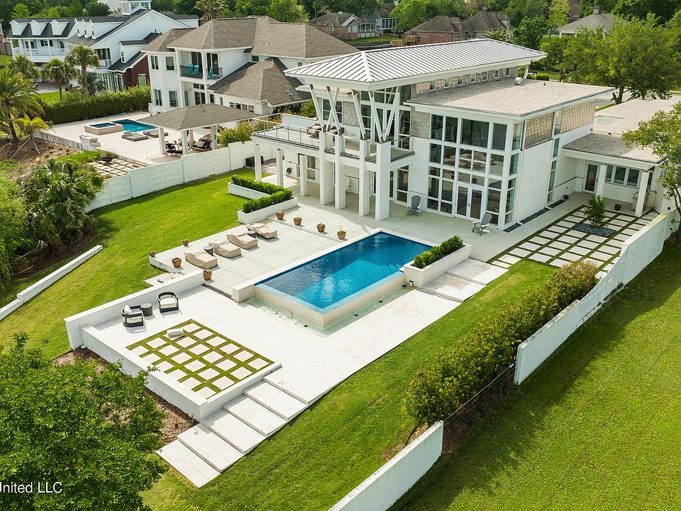 This magnificent waterfront home on the Back Bay of Biloxi, designed by