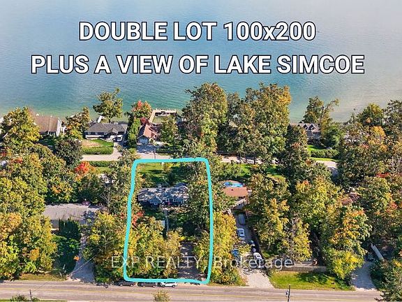 Ranch Style Bunglaw. Freshly painted exterior and brand-new roof (high impact shingles) PLUS all new eavestroughs (Sept 2025). This 69-year-old home is full of character and offers 1,324 sq. ft. of comfortable living space with views of Lake Simcoe. Set on nearly half an acre (one of the few double lots in the neighbourhood) this property gives you the convenience of double road access from both the front and back of the house. Inside, the layout feels warm and welcoming. A living room overlooking the lake, an open-concept kitchen and dining area designed for easy hosting, and two spacious and inviting bedrooms. The home is equipped with electric baseboard heating but the gas fireplace does most of the heavy lifting, a charming focal point of the home. Outdoors, the landscaped front and backyards are something out of a story book, with mature trees and full gardens. Enjoy your morning coffee on the patio, summer barbecues on the deck, and fall evenings by the fire. There's also a detached 10'x8' workshop with hydro and a bunkie/art studio, giving you space for projects, storage, or creative pursuits. The location is hard to beat! Just steps from Lake Simcoe and close to golf courses, beaches, a public park, hiking trails, and a boat launch, this property is ideal for year-round living or a peaceful cottage retreat. BONUS INCLUSIONS: Riding lawnmower, Muskoka chairs, 2 chair swings, firepit, and more, you can step right in and start enjoying the lakeside lifestyle without missing a beat.
