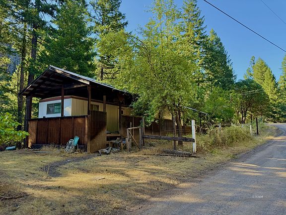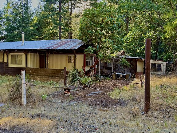 Fixer Mobile Mobile with Extra Outbuilding Unit on the Hill. Hilly and treed property totalling 2.4ac and situated with TPUD Electric Power, septic system and a water well down in the creek. Located just 4 mi from the Douglas City Store @ Hwy 299 and another few mins from everything Weaverville has to offer. Just about 1/4 or 1/2 mile from the Trinity River and several public access river parks. The home is an older 2BD/1BA single-wide with a pop-out in the living room on concrete blocks, a stick-built attached family room addition, and a giant ramada roof covering all of it. The home itself is old and needs a great deal of work on the inside and outside. There's a covered front porch with the remains of a handicap ramp, please use caution if visiting as the steps and porch are dangerous and in disrepair. Several outbuildings including a sleeping/storage cabin that's seen better days, with multiple finished and unfinished rooms, a kitchen and a bathroom all in disrepair. Two sheds that are partially filled with old items from a bygone era. The property is being sold as-is with the older personal property items still in place. The water pumps and lines have mostly been removed and need to be replaced.