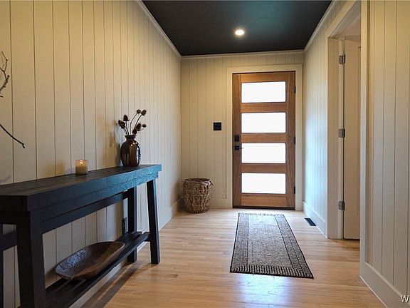 Discover modern comfort and elegance in this meticulously remodeled 4-bedroom, 3-bathroom ranch located in the Iroquois school district. Renovated down to the studs in 2022, this home boasts an open-concept kitchen with a stunning 10-foot island with seating, quartz countertops, and a convenient beverage center. The kitchen seamlessly flows into the family and dining room, featuring cathedral ceilings, a cozy wood-burning stove, a striking accent wall, and an abundance of natural light with beautiful backyard views. The primary suite is a true retreat with a gas fireplace, walk-in closet, and an en-suite bathroom. Downstairs, a fully finished basement offers a second family room, a fourth bedroom, and a full bathroom, all crafted with the same high-quality finishes as the main level. The entire basement is waterproofed with drain tile. Additional highlights include hardwood floors throughout, brand-new plumbing and electric with an updated panel (2022), a newly installed septic system (2022), and a HVAC updated in 2016. Located just five minutes from the charming historic Village of East Aurora. No escalation clauses will be accepted. Offer Deadline Tuesday 11/12 @ 7:30pm