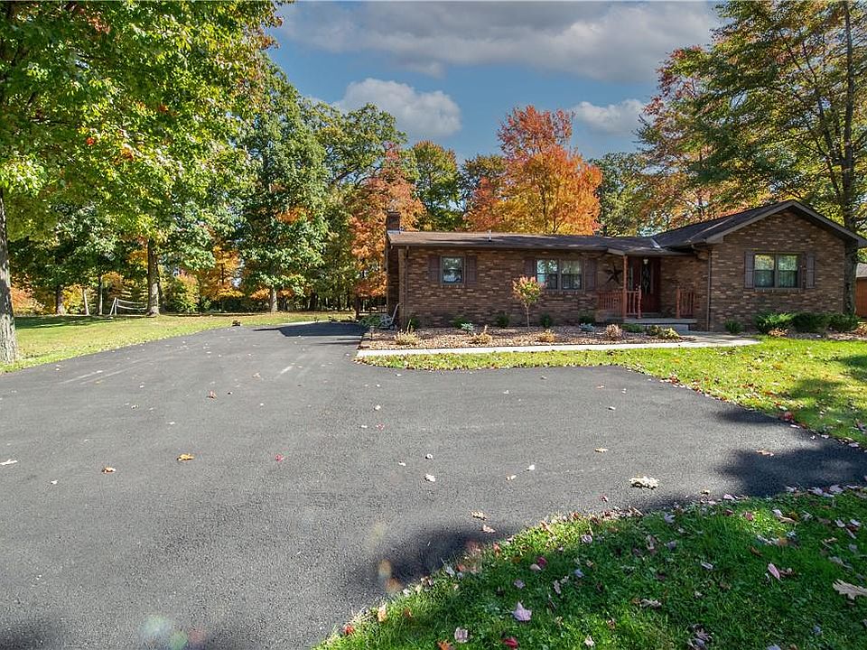 Well maintained all brick ranch located in the desirable Meridian area. The home is so much larger than it appears and offers one level living many seek to have. This home sits on just shy of 1 acre and offers a large front yard, rear yard backed by a Woodline. The exterior also has a well maintained paved driveway, large stamped concrete patio, composite decking, and an above ground pool which needs some TLC. Inside you will find an abundance of Oak cabinetry, very large family room, master bedroom with an updated en-suite bath with a tile shower. The lower level is partially finished and has the 4th bedroom.