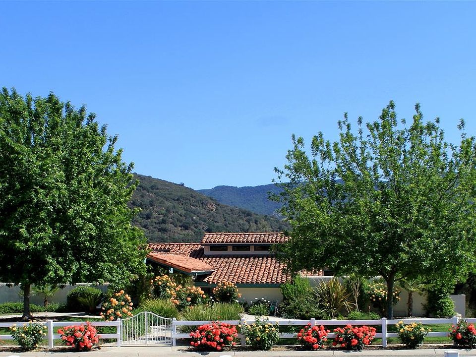 Resort-like living in prestigious Persimmon Hill. Backs to federally protected San Antonio Creek. Beautifully landscaped nearly 4 acre horse property, w/meandering paths throughout the grounds. Nature abounds, with regular sightings of deer, coyote, bobcat & 117 bird species recorded in the last 10 years, yet it is less than 5 minutes from downtown Ojai. Entertainer's delight w/pool,spa&large brick patio with fabulous views. See the Pink Moment. Unique architectural features with 17ft vaulted ceilings, arched doorways, clerestory windows & cutouts. Terra cotta mission tile floors throughout. 8 year old tile roof. Newer 5 zone furnace and central a/c. Loft now used as den/office but could easily become a 4th bdrm. Huge approx 300sqft finished storage rm off loft not included in sqft. 4 stall barn w/runs leads to 2 acre field w/riding ring and separate grazing areas. Also has tack room and tool shed in barn area. Fully fenced - dog&horse proof. This one has it all.