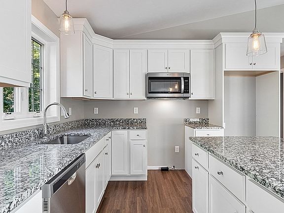 Beautiful three bedroom, two bath Split Level situated on a very nice level lot. Desirable open concept kitchen, dining and living room area featuring a cathedral ceiling. The kitchen has granite countertops, an island and SS appliances. The master bedroom has it's own full bathroom. LVP flooring throughout except the bedrooms which have carpet. The lower level offers a great opportunity for finishing. Enjoy the spacious two car garage which has extra room for a work bench or storage. Granite front steps, a 10x12 deck, paved driveway and more! Convenient to shopping, restaurants and commuting. Town water & sewer. Other lots available.