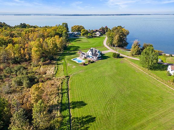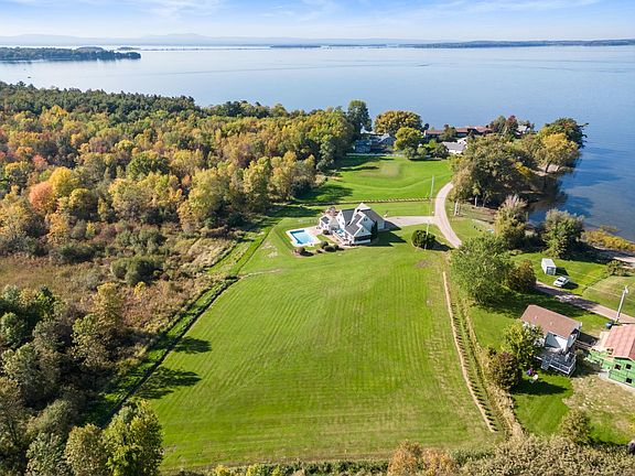 A rare 4 bedroom 2.6 acre residence with 130 feet of Lake frontage on the coveted Thayer Beach Road. This property feels private with only 4 homes past it on its quiet cul-de-sac & bordered by the conserved Rosetti Natural Area. Only 6 miles to downtown Burlington yet far from the hustle. Designed for enjoying a healthy lifestyle and year-round outdoor activities. Long, sweeping lawns, an in-ground pool & your own private beach comprised of shallow clear water for swimming and water sports transform into a winter wonderland for skating, ice-fishing, and XC skiing. The home has been meticulously cared for and has potential for additional living space on the 3rd floor or to convert an in-law suite over the garage. Open spaces and natural light fill the interior. The primary bedroom has an ensuite bathroom, two walk-in closets, a separate cozy office or yoga space & boasts great sunrise views over Lake Champlain. The kitchen is open to a large family area and sun room – a perfect area for entertaining. All four bedrooms are on the second floor, yet one of those meanders away from the others giving it a natural layer of privacy – perfect for a teen or guests. Solar panels on the south facing roof cover over 90% of the electricity usage. Enjoy a backyard BBQ next to the pool which boasts a diving-board and brick patio surround. End each day in the hot tub which is aptly sitting in its own room for easy use all year long. Your retreat awaits!
