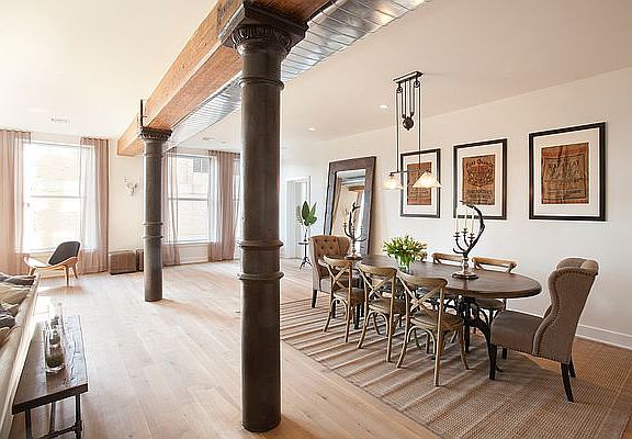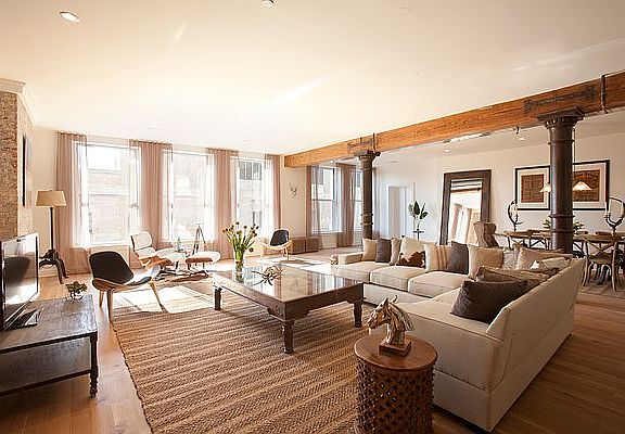 Spectacular 4106 square foot first floor elevated duplex with 13 ft ceilings in turn of the century converted Spice Warehouse overlooking Hudson Square Park. This private residence perfectly combines Old World character with modern conveniences. Historic cast iron columns, original exposed bricks, expansive wood beam with original brace work and 4" plank Appalachian white oak flooring are just some of the highlights. Open gourmet kitchen with Newport Shaker style cabinetry, 6-burner Wolf range with vented hood, 56 bottle wine cooler and double door refrigerator by Liebherr and apron-front farmhouse sink. Oversized Master suite with generous fully outfitted closets and opulent master bath with Italian Carrara marble tiled walls, radiant heat flooring and dual pedestal cast iron soaking tub. 2 additional bedrooms w/ 2 full marble baths and an expansive recreation area with it's own half bath. W/D vent out. Upper level 2762 SF, lower level 1344 SF. Partly attended lobby, virtual doorman and bicycle storage. With only 14 apartments in the entire building, this is a rare and limited offering for the most discerning of residents. Come enjoy this private and quiet corner of NYC, with easy access to all of the best restaurants, retail and galleries that SoHo and Tribeca have to offer. Please contact me now to schedule your appointment to view this amazing and unique turn-key property.