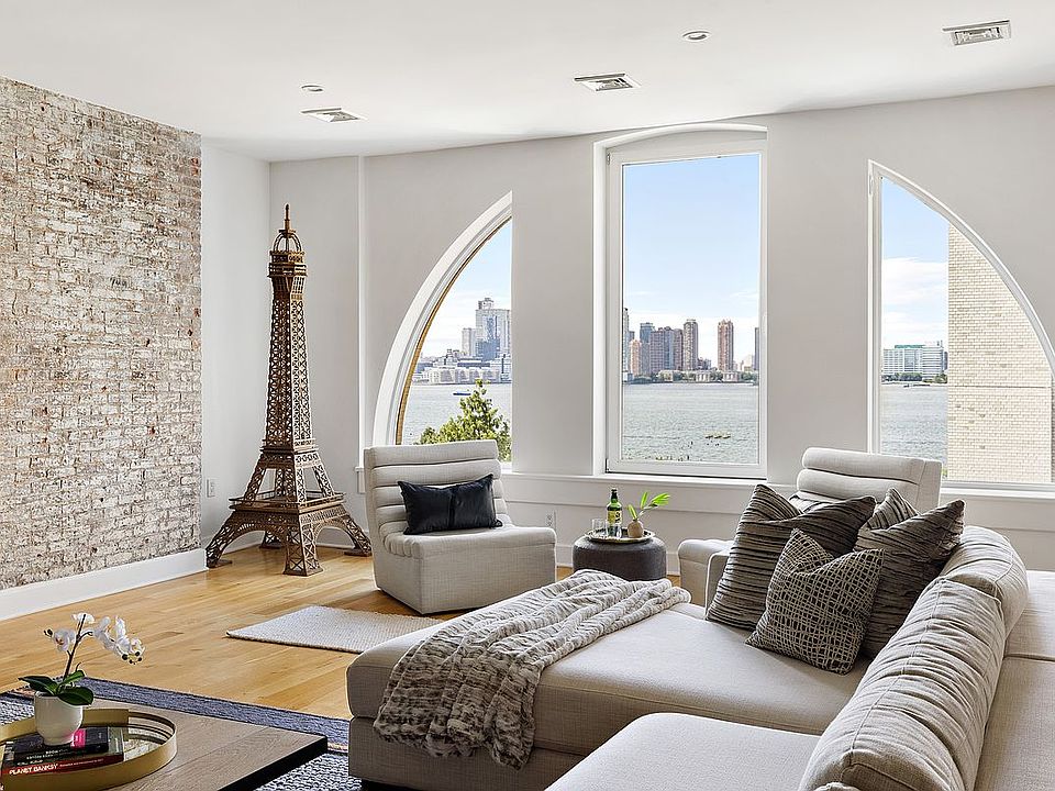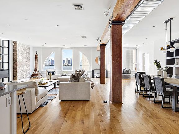This spectacular private full floor loft checks all the boxes Views, Spacious and Quiet, It offers almost 3,000 sq ft of living space with 3 bedrooms, 3 bathrooms and a home office as well as dazzling views of the Hudson river through giant arched windows. The key locked elevator opens onto an expansive great room with 3 original wooden columns supporting the wooden ceiling beam with its brace-work intact.