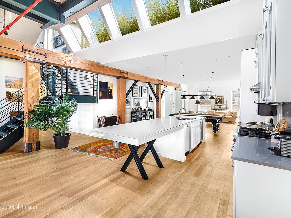 First time on the market: Trophy Penthouse with direct Hudson river views and a large landscaped magical 1100 square foot garden in recently converted Spice Warehouse condominium. Currently configured as a 3052 square foot expansive open loft with one bedroom, two full bathrooms and soaring ceilings up to 15 feet, the residence was originally a two bedroom, 2 baths Penthouse that can easily be brought back to it's two bedroom layout. PHB is the only residence in the building that in addition to it's beautiful river views also features open city views East. A key locked elevator opens onto the river facing great rrom with mesmerizing river views. The open chef's kitchen features solid wood Shaker-style white cabinetry, beautifully complimented with a frosted glass subway tile backsplash, grey Caesarstone countertops and a white cast iron apron-front farmhouse sink. Appliances include a Liebherr French Door refrigerator with 2 freezer drawers, a 56-bottle Liebherr wine cooler, 6-burner Wolfe gas range and Bosch dishwasher and microwave, all in stainless steel. The expansive master suite has walk in closets and a master bathroom with Carrera marble subway tiles, free standing deep soaking tub, Dornbracht fixtures and heated floors.The Spice Warehouse was built in 1895 and it's regal Beaux Arts façade stands at the crossroads of SoHo, Tribeca and the West Village. Onsite resident manager, gym, package and bike rooms and private storage.