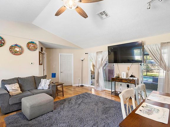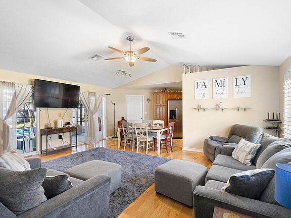 Welcome to your new home! Brand New Roof! New Septic Tank and Drain Field! Step into this charming two-bedroom, two-bathroom pool home, all rooms offer great pool views. As you enter, there is an inviting open living area looking out to the pool and privacy fenced yard. The living room has beautiful hand-laid oak floors, exuding a warmth. Fall in love with spacious kitchen with stainless steel appliances. Delight in the convenience of dual primary suites, each with an en suite bathroom and ample walk-in closet, ensuring comfort and privacy. Escape to your outdoor retreat where a large screened enclosure envelops the pool, perfect for relaxation and entertaining. Embrace outdoor dining and gatherings beneath the covered patio. Need space for your outdoor gear? Look no further than the 10x12 shed, complete with a cement floor, offering ample storage for all your needs. And for those who love adventure, a gated backyard paver area awaits, ideal for parking your boat, jet skis or RV.