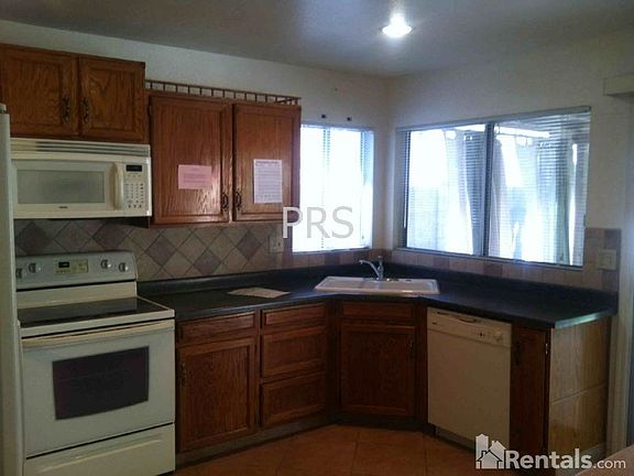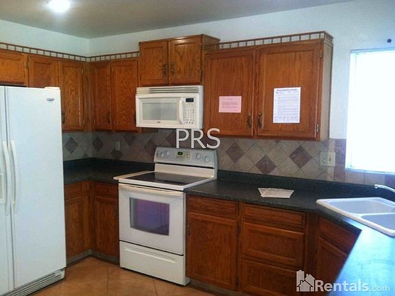 One level single family home w/ tile floor entry. Dining room w/ tile floor. Living room w/ ceiling fan, wood-burning fireplace and tile floor. Kitchen w/ tile floor, range/oven, dishwasher, disposal and microwave. Laundry inside garage w/ w/d included. Master bedroom w/ walk-in closet and ceiling fan. Master bathroom w/ separate shower only and tile floor. Two car garage w/ auto-opener. Desert front yard.