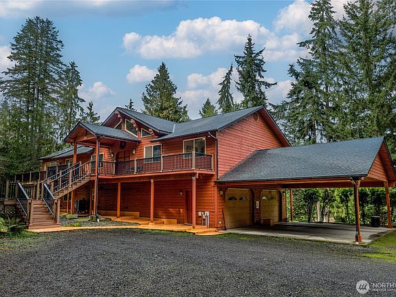 Step into your private retreat in Port Angeles! This spacious 3-bedroom, 3-bathroom, custom built home offers 3,712 square feet of living space and 1380 sq.ft of garage/shop space. All on nearly 5 tranquil acres, surrounded by trees and a park like setting. The inviting living area features a cozy wood fireplace, perfect for creating warmth during chilly evenings. The primary bedroom includes an electric fireplace, providing an extra touch of comfort. Outside, you'll find an expansive yard with full RV hookups and a barn, plus additional space above the barn/shop perfect for a guest area or extra living space. This property is ideal for those seeking a peaceful lifestyle with room to explore. Don’t miss out—schedule your showing today!