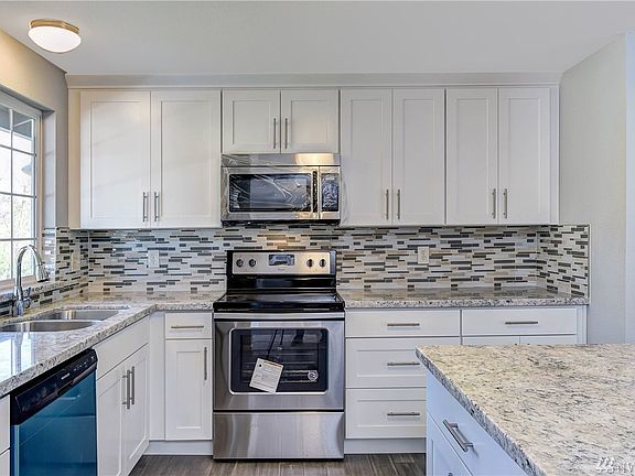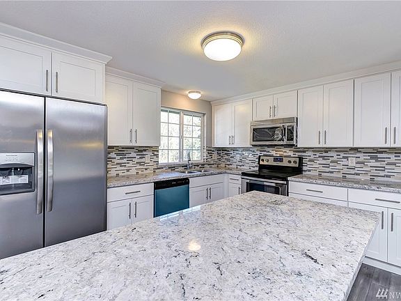 Completely updated 4bd/2ba with one bonus room in Federal Way home on large lot, close to the golf course & local amenities. All new interior/exterior paint, flooring, trim, light fixtures & much more! Kitchen boasts new cabinets, quartz counters & SS appliances. Master suite w/his & hers closet, custom tile shower surround & quartz topped vanity. Downstairs family/rec room, plenty of space to entertain. This one is sure to impress, preview today. Multiple offers in.